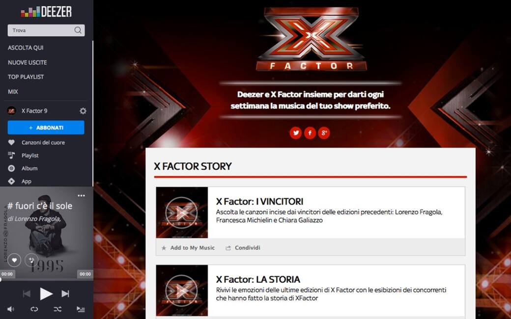 La musica di X Factor con Deezer