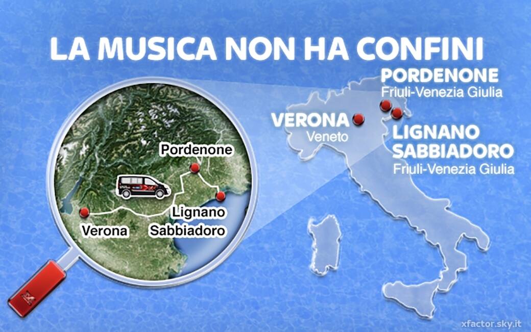Dopo una tappa in Umbria e in Toscana X Factor On The Road torna al nord per fermarsi definitivamente a Milano. Prima di tornare a casa però guidiamo il nostro van fino in Friuli-Venezia Giulia passando per il Veneto. Segnatevi questi appuntamenti: Venerdì 17 aprile saremo a Verona in Piazza Bra dalle 9:30 alle 18