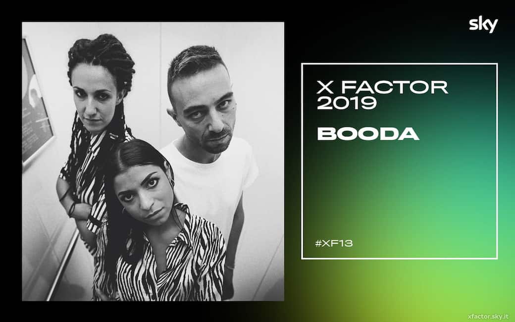 Nomi: Alessio, Federica e Martina Età: 39, 27 e 32 anni Città: Roma Giudice: Samuel Alessio, Federica e Martina sono i Booda. Federica, voce del gruppo, è siciliana e vive a Roma da dieci anni così come Federico originario di Anagni. Martina, invece, è originaria della Capitale. I tre ragazzi si conoscono grazie ad amici in comune e formano la band solo due mesi prima dell’inizio del percorso a X Factor 2019 ma, pur suonando insieme da pochissimo tempo, fin da subito hanno trovato un ottimo feeling, grazie alla loro passione per il sound “black”